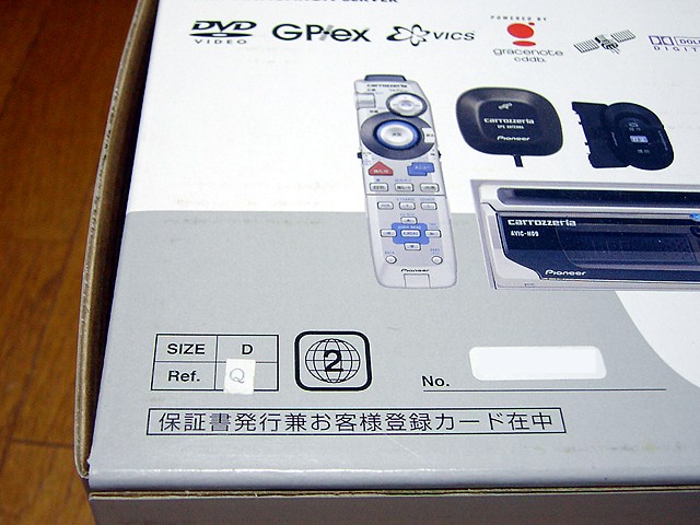 今回取り付けたナビのパッケージです。ナビ本体の箱にあるRef.は Q でした。