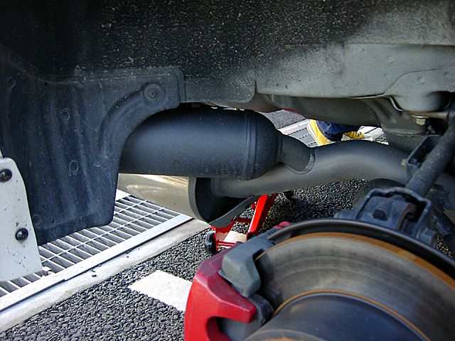 出口は110φとかで、かなり迫力があります。 左の画像のとおり、サブタイコ部がかなり低くて、 車高を落とすと車検は通らないだろうなぁ、という話です。 右はサブチャンバーです。ちょっと重そう? |